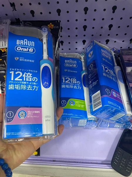 - Bàn chải đánh răng Oral-B là 1 bàn chải đánh răng chạy bằng pin sử dụng công nghệ khuếch tán xung,đầu bàn chải xoay cùng rung lắc với xung nhịp cao đem lại hiệu quả làm sạch và an toàn tuyệt đối cho răng miệng.