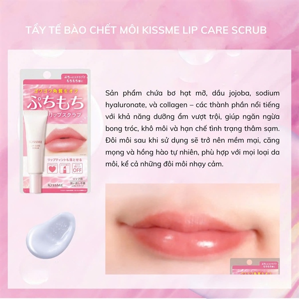 Tẩy Tế Bào Chết Môi Kissme Lip Care Scrub Dưỡng Ẩm Môi là sản phẩm chăm sóc môi cao cấp đến từ thương hiệu Kissme của Nhật Bản, được thiết kế để mang lại đôi môi mềm mại, căng mịn và rạng rỡ.