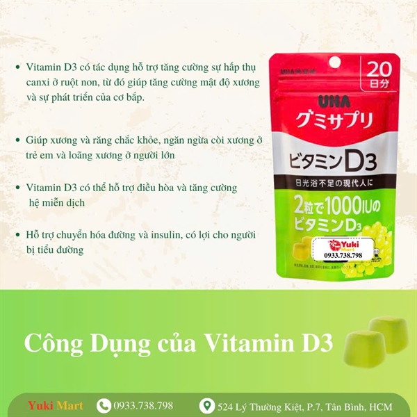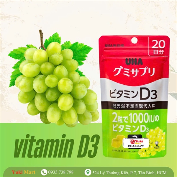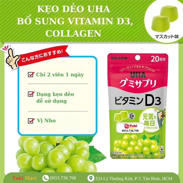 Kẹo dẻo bổ sung vitamin D3 & Collagen UHA túi 40 viên